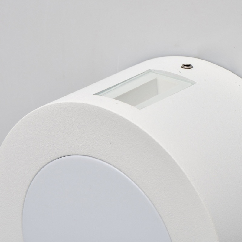 Основание светильника выполнено из сплава алюминия и обработано по технологии порошкового окрашивания в белый цвет. Светодиодные источники света типа SMD Chip закрыты белым матовым акрилом во фронтальной части и прозрачным стеклом по бокам.