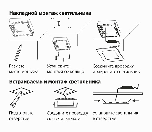 Характеристики Универсальный накладной/встраиваемый потолочный светодиодный светильник DLS020 24W 4200K