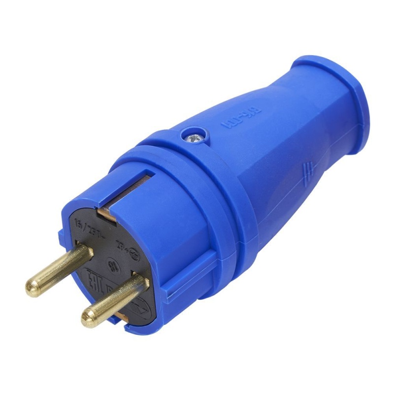 Вилка прямая с/з, STEKKER, RPG16-21-441 (В 16-001), каучук 250В, 16A, IP44, синий