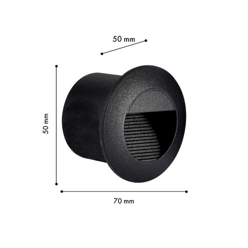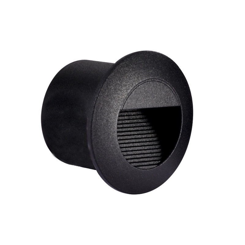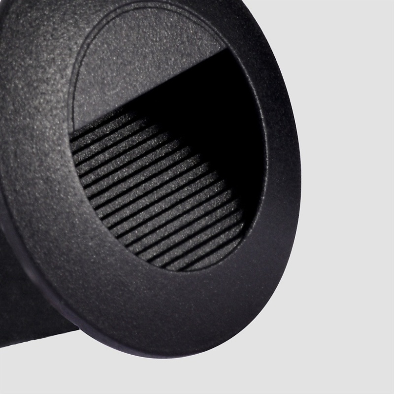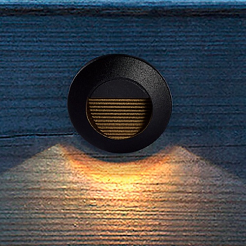 Корпус из металла черного матового цвета круглой формы, для освещения нижней части фасадов стен и ступеней, LED-модуль OSRAM, защита IP54.