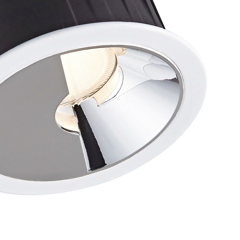 Светильник типа "wall-wash" , рамка белого цвета, рефлектор цвета хром, монтируется вдоль стен, которые нужно акцентировать, LED-модуль LUMILUS, защита IP20.
