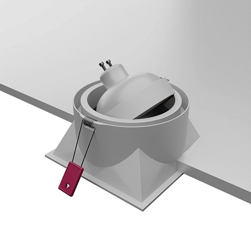 Металлический каркас белого цвета, цоколь GU10, защита IP20.