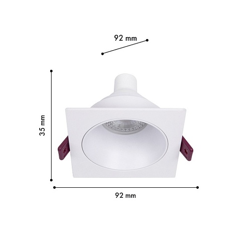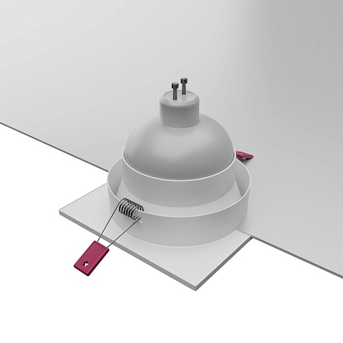 Металлический каркас белого цвета, цоколь GU10, защита IP20.