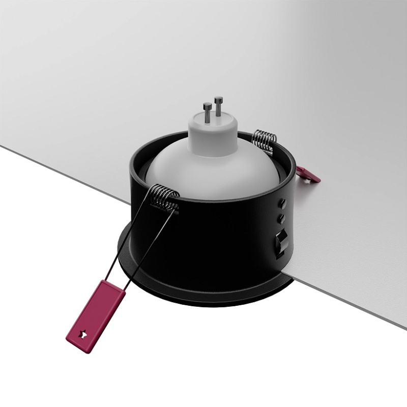 Металлический каркас черного цвета, цоколь GU10, защита IP44.