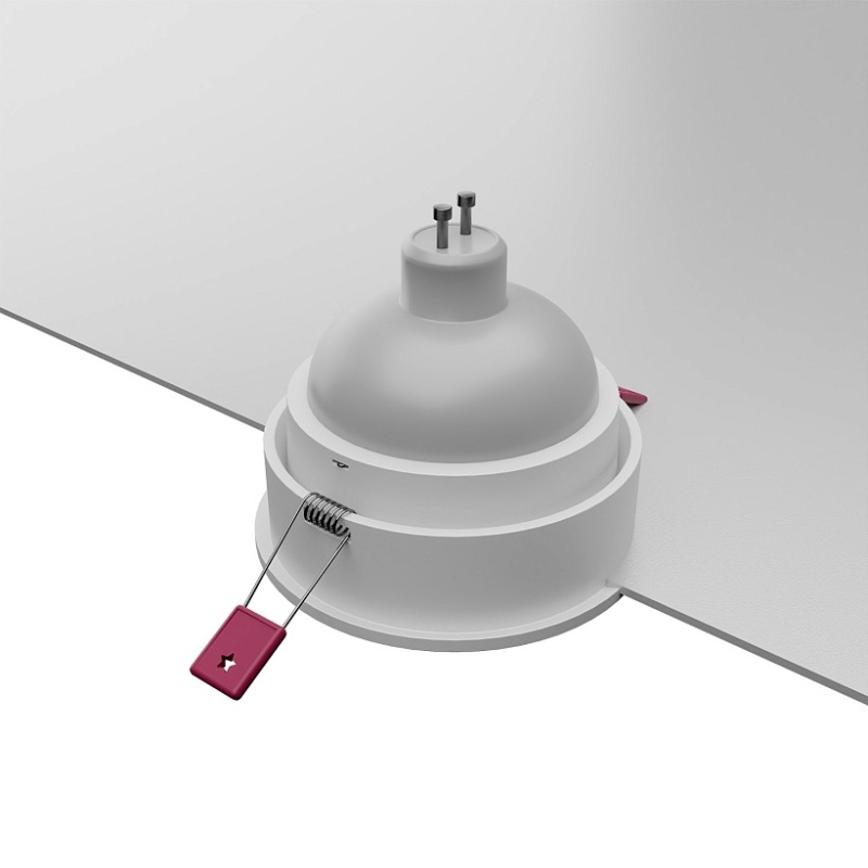 Металлический каркас белого цвета, цоколь GU10, защита IP20.