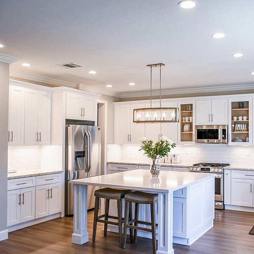 Корпус из метала белого цвета, рассеиватель из белого пластика, регулируемая цветовая температура, переключатель на корпусе, пульт в комплекте.