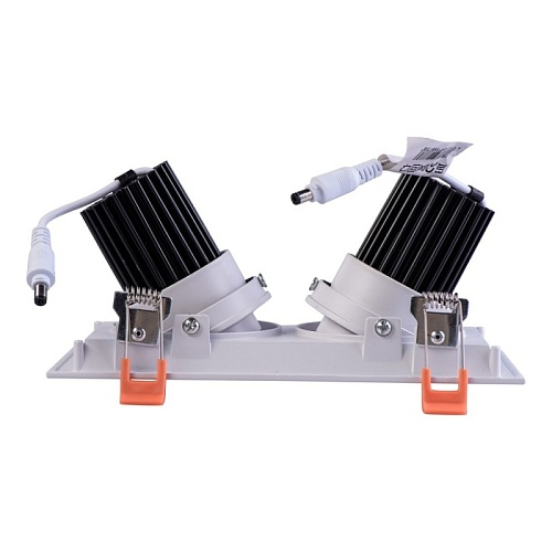 Корпус: сплав алюминия, окрашивание в белый цвет. Плафоны снабжены поворотным механизмом. Светодиодные источники света типа COB снабжены сферолитной оптической линзой.