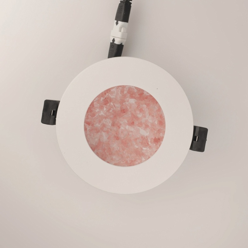 Основание светильника выполнено из сплава алюминия и окрашено в белый цвет.Светодиодные источники света типа SMD Strip закрыты прозрачным стеклом. Цветная стеклянная крошка.