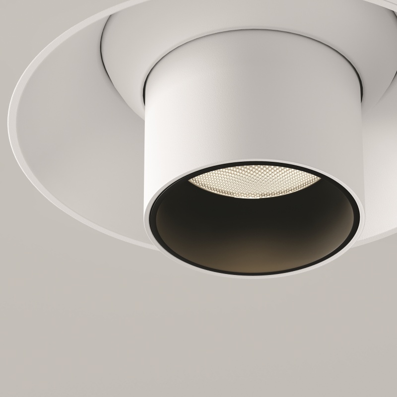 Материал корпуса – металл; цвет – белый, чёрный и латунный. Миниатюрные размеры. Плафон из двух частей. Горизонтальный и вертикальный поворотный механизм. LED-источник света. Цветовая температура – 3000К или 4000К. Высокий коэффицициент цветопередачи >90.