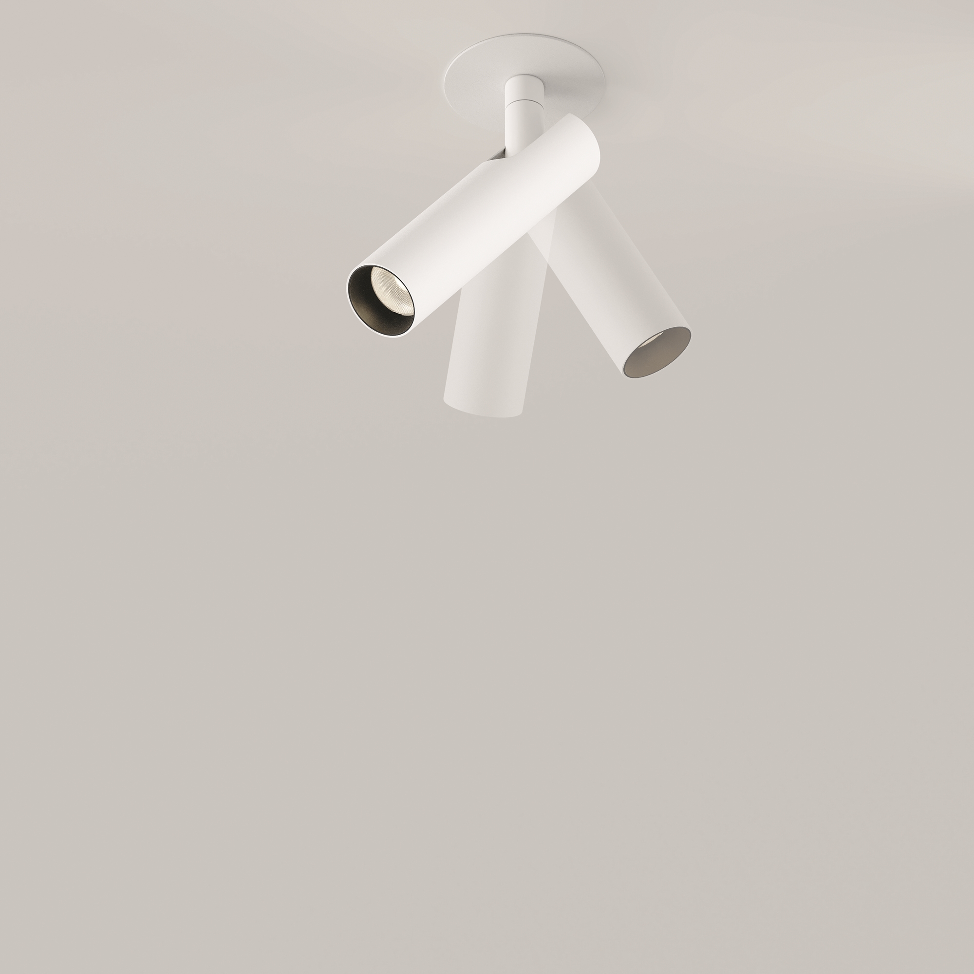 Материал корпуса – металл; цвет – белый, чёрный и латунный. Миниатюрные размеры. Плафон из двух частей. Горизонтальный и вертикальный поворотный механизм. LED-источник света. Цветовая температура – 3000К или 4000К. Высокий коэффицициент цветопередачи >90.