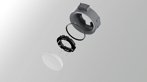 Предназначен для установки в натяжной ПВХ потолок. Состоит из основания, термокольца и цоколя GX53. Основание и цоколь выполнены из термостойкого и ударопрочного АВС пластика. Монтаж производится методом втяжки. Конструкция светильника позволяет легко стыковать между собой несколько оснований, благодаря чему можно создавать комбинации из нескольких светильников.