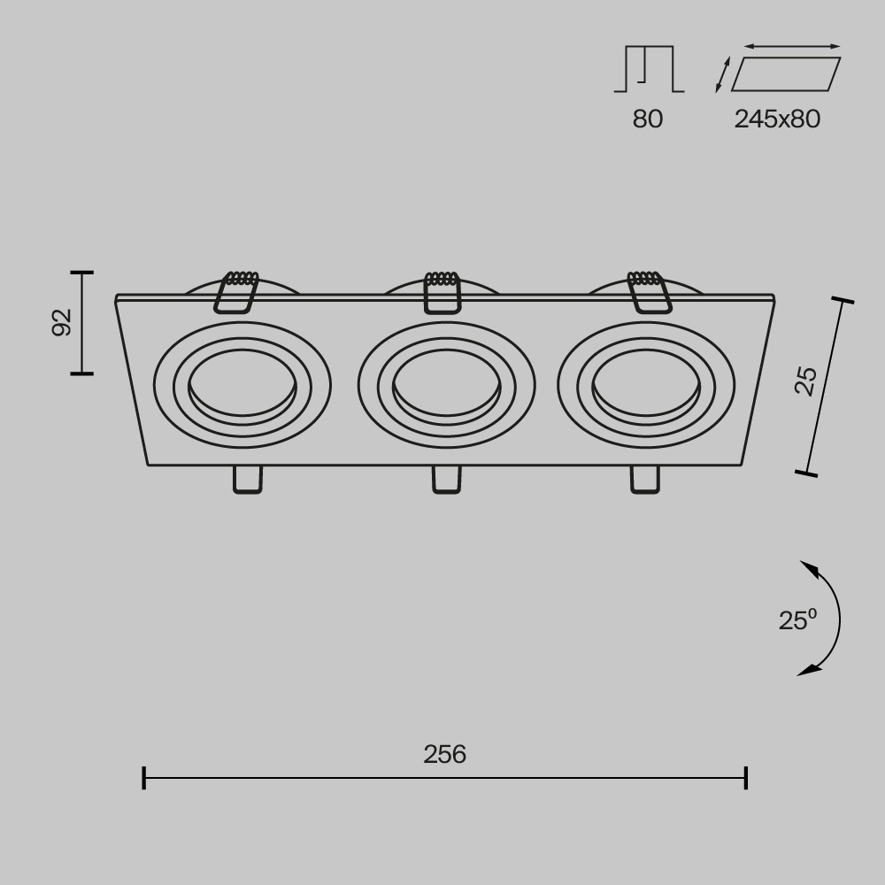 Встраиваемые потолочные светильники с корпусом, изготовленным из алюминия по технологии литья под давлением. При окрашивании используется стойкая к царапинам порошковая краска. Направление светового потока регулируется в одной плоскости с отклонением от оси на 25°. Серия представлена моделями с одной лампой, а также комбинациями из двух и трех светильников, собранных в единой металлической раме. В качестве источника света рекомендуется использовать лампы Voltega (art. 7060/7061) мощностью 7W и углом рассеивания 38°. Диммируемые версии ламп — art. 7108/7109.