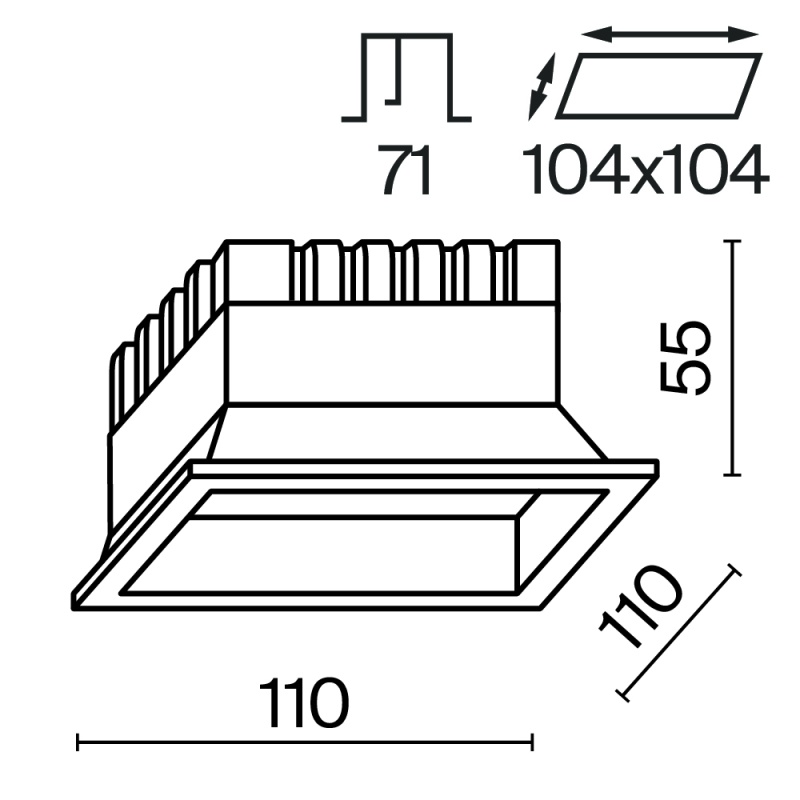 Характеристики Встраиваемый светильник Technical Okno DL056-12W3-4-6K-W