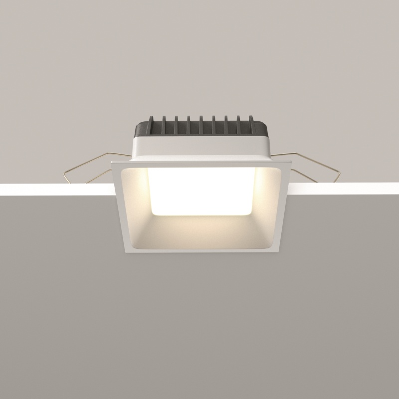 Материал арматуры - алюминий и пластик. Организация основного освещения в интерьере. Высокий коэффициент цветопередачи >90. Качественное отображение цветов. Утопленный матовый рассеиватель. Переключатель цветовой температуры. Повышенная степень пылевлагозащиты IP 44.