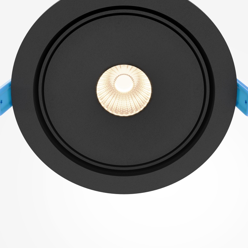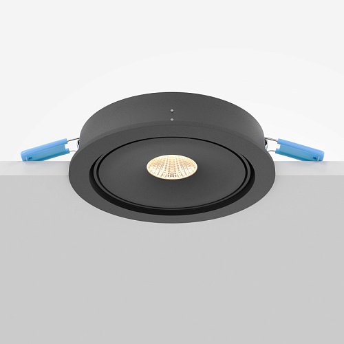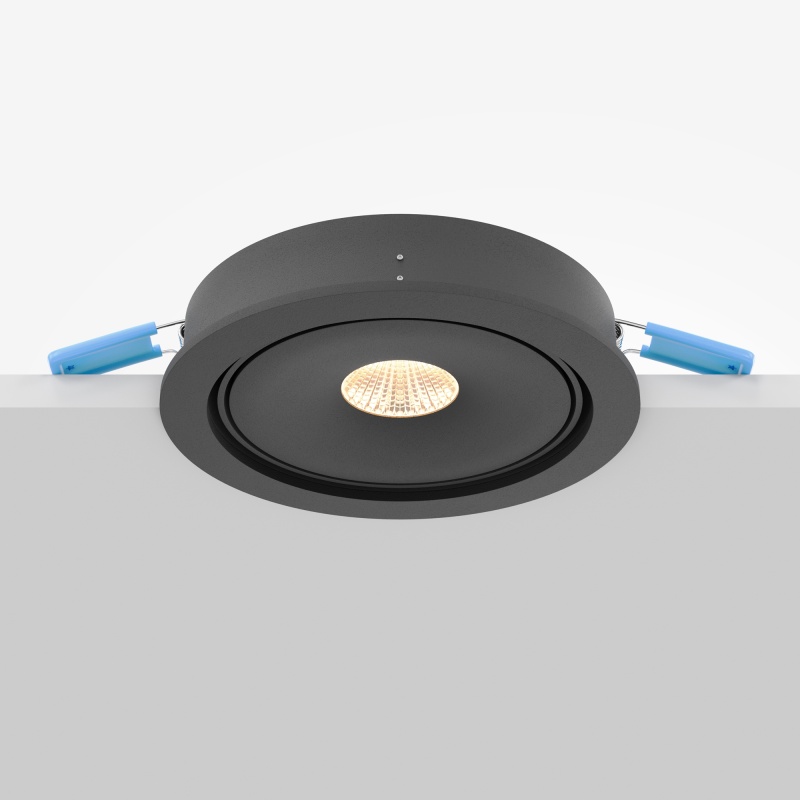 Металлический корпус в двух вариантах: встраиваемый и встраиваемый под шпаклёвку. Цвета: чёрный и белый. Поворотный механизм. LED-источник цвета с переключателем цветовой температуры (ССТ). Цветовая температура – 3000К, 4000К или 6000К. Высокий показатель цветопередачи - CRI>90. Совместимость с драйверами DALI.