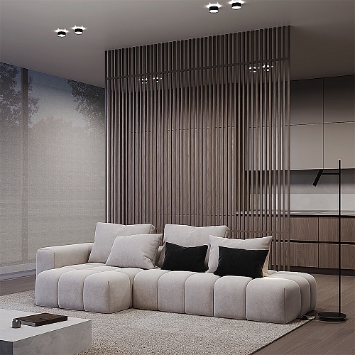 Материал корпуса – металл; цвет – чёрный или белый. Лампа GU10. Мягкий свет, исходящий в двух направлениях. Дополнительное свечение на потолоке за счёт конструкции моделей.