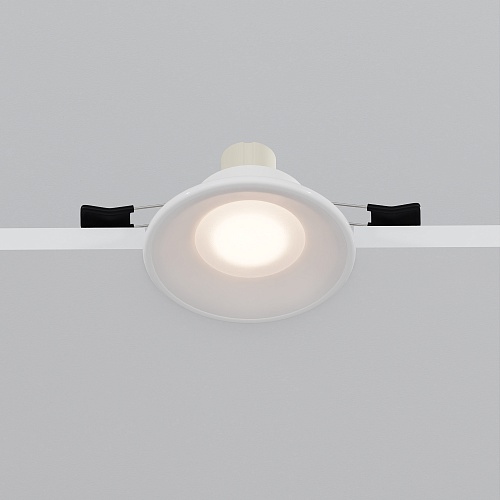 Корпус из алюминиевого сплава, покрытый акрилом. Сияющий эффект при свечении. Цвет – нежно-белый. Лампа GU10. Отсутствие стопорного кольца.