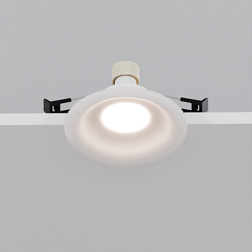 Корпус из алюминиевого сплава, покрытый акрилом. Сияющий эффект при свечении. Цвет – нежно-белый. Лампа GU10. Отсутствие стопорного кольца.