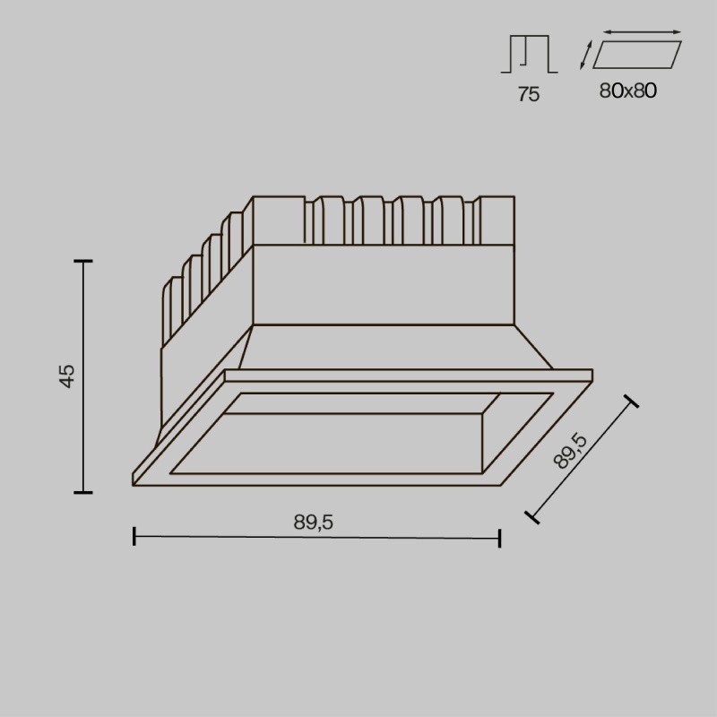Характеристики Встраиваемый светильник Technical Okno DL056-8W3-4-6K-B