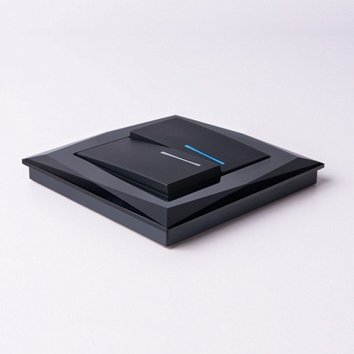Выключатель двухклавишный проходной с подсветкой (черный матовый) W1122108
