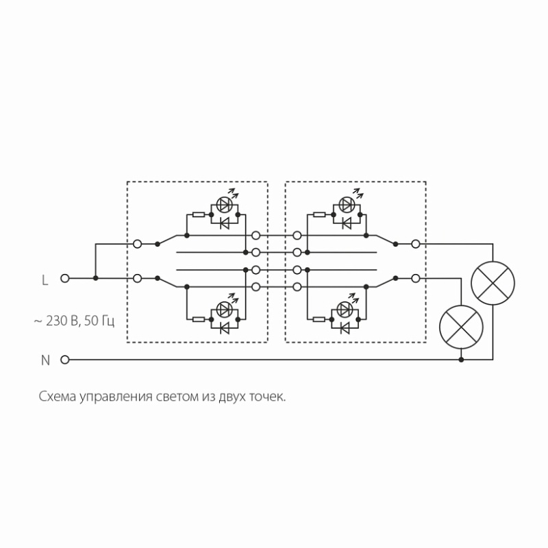 Выключатель двухклавишный проходной с подсветкой глянцевый никель W1122102