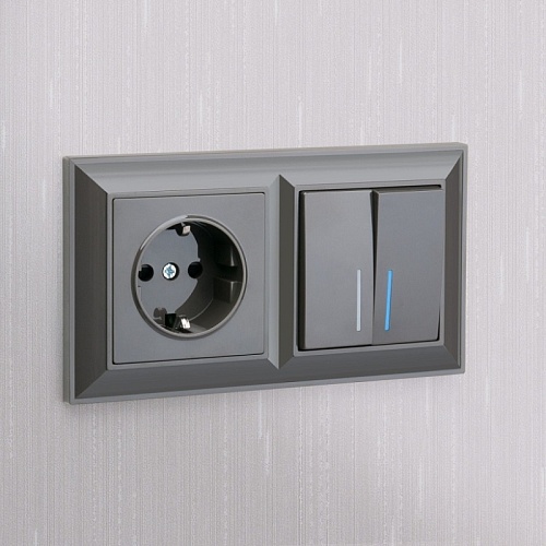 Характеристики Выключатель двухклавишный с подсветкой (серо-коричневый) W1120107