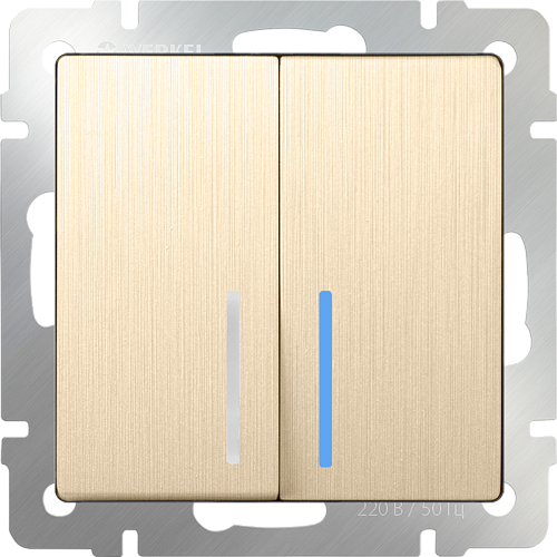 Характеристики Выключатель двухклавишный с подсветкой шампань рифленый WL10-SW-2G-LED
