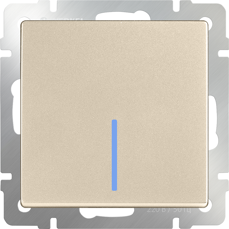 Выключатель одноклавишный проходной с подсветкой шампань WL11-SW-1G-2W-LED