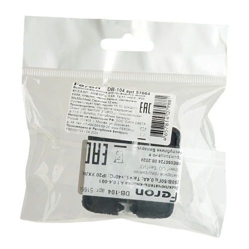 Характеристики Выключатель-кнопка для проводного звонка FERON DB-104, черно-белый