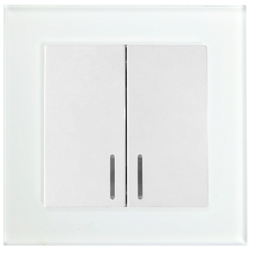 Выключатель 2-клавишный c индикатором, STEKKER, GLS10-7002-01, 250В, 10А, серия Катрин, белый