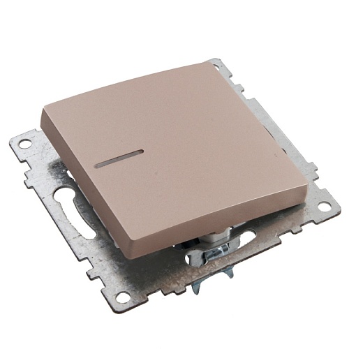 Выключатель 1-клавишный c индикатором (механизм) STEKKER GLS10-7101-02, 250В, 10А, серия Катрин, шампань