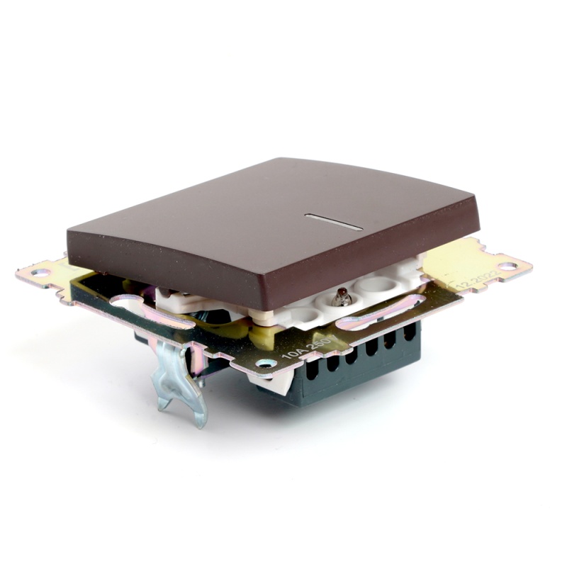 Характеристики Выключатель 1-клавишный c индикатором (механизм) STEKKER GLS10-7101-04, 250В, 10А, серия Катрин, шоколад