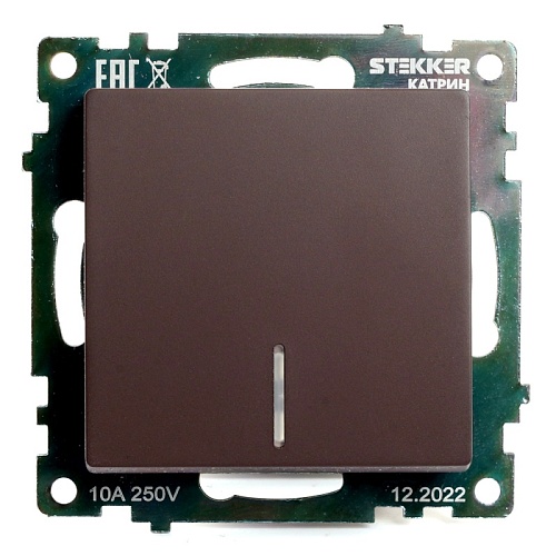 Выключатель 1-клавишный c индикатором (механизм) STEKKER GLS10-7101-04, 250В, 10А, серия Катрин, шоколад 49022