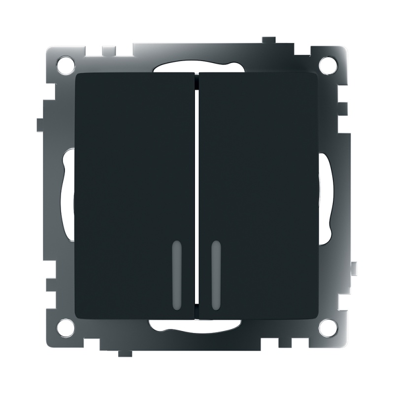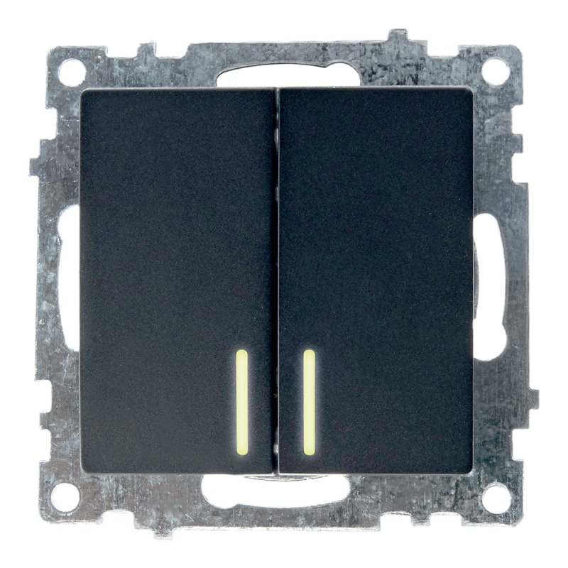 Выключатель 2-клавишный c индикатором (механизм), STEKKER GLS10-7102-05, 250В, 10А, серия Катрин, черный