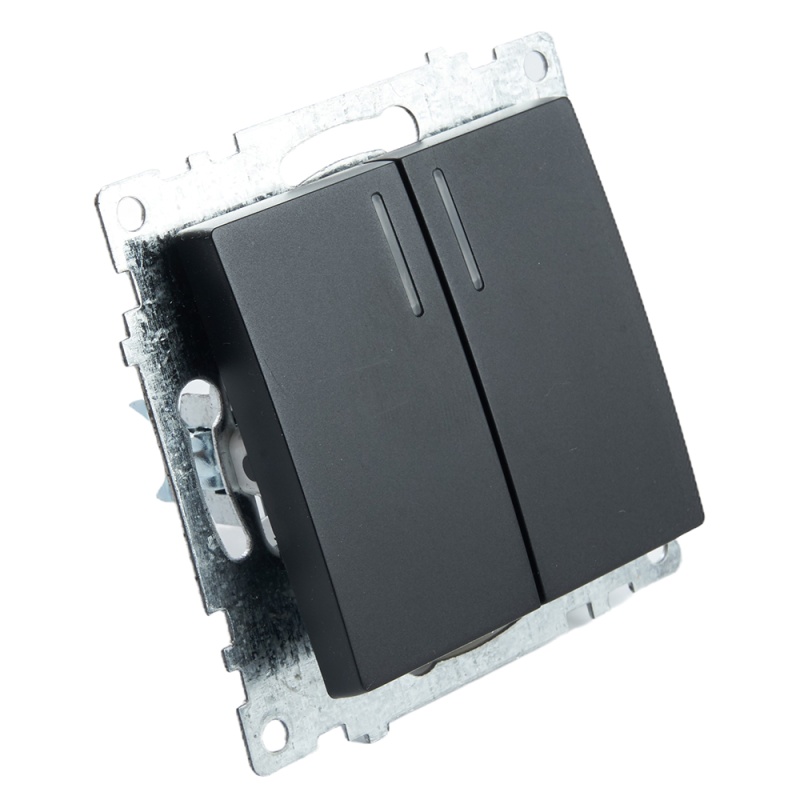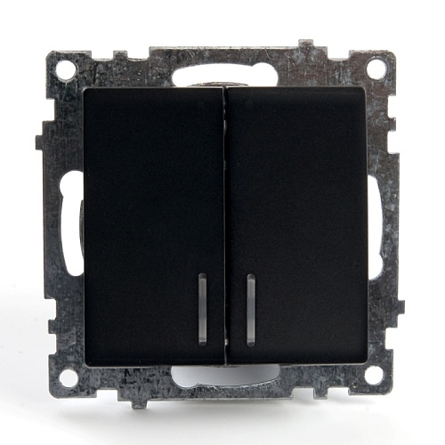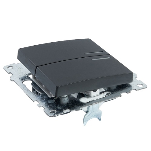 Выключатель 2-клавишный c индикатором (механизм), STEKKER GLS10-7102-05, 250В, 10А, серия Катрин, черный 39607