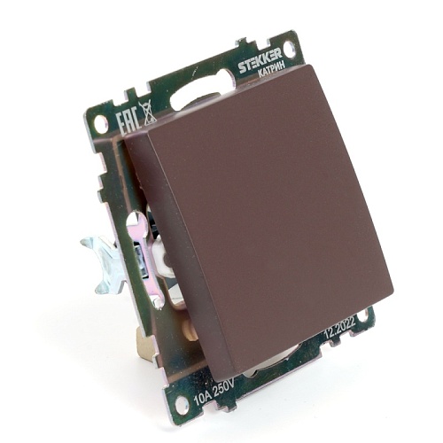 Выключатель 1-клавишный (механизм), STEKKER GLS10-7103-04, 250V, 10А, серия Катрин, шоколад 49020