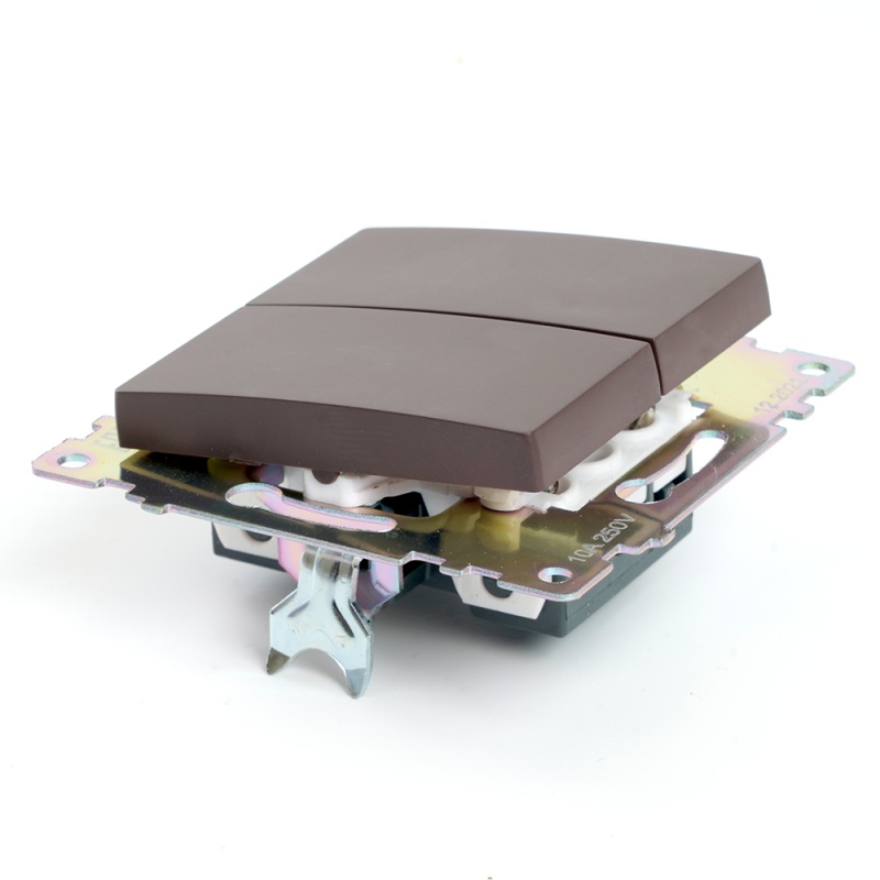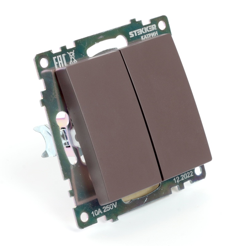 Выключатель 2-клавишный (механизм), STEKKER GLS10-7104-04, 250V, 10А, серия Катрин, шоколад