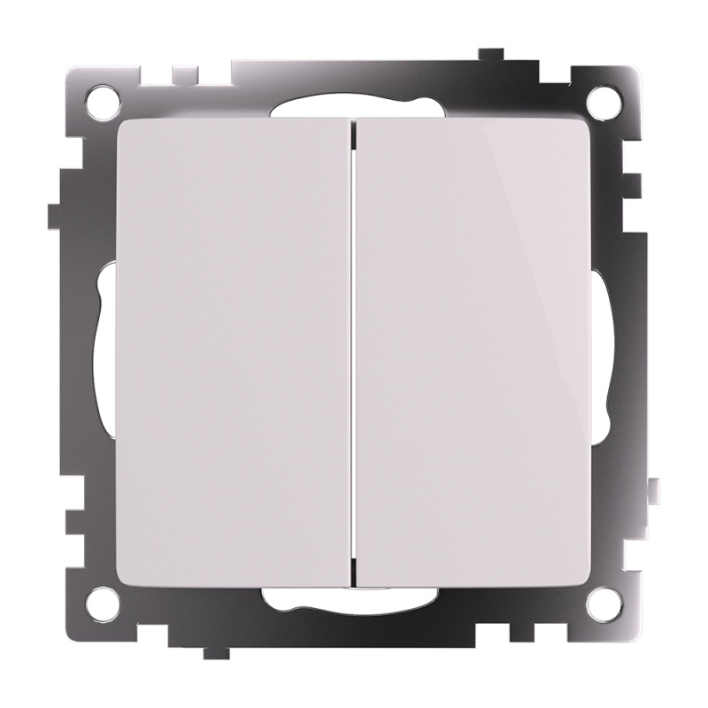 Характеристики Переключатель 2-клавишный (механизм), STEKKER GLS10-7107-01 , 250V, 10А, серия Катрин, белый