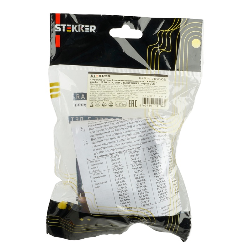Отзывы о Переключатель 2-клавишный (механизм), 250В, 10А, серия Катрин, графит, GLS10-7107-06