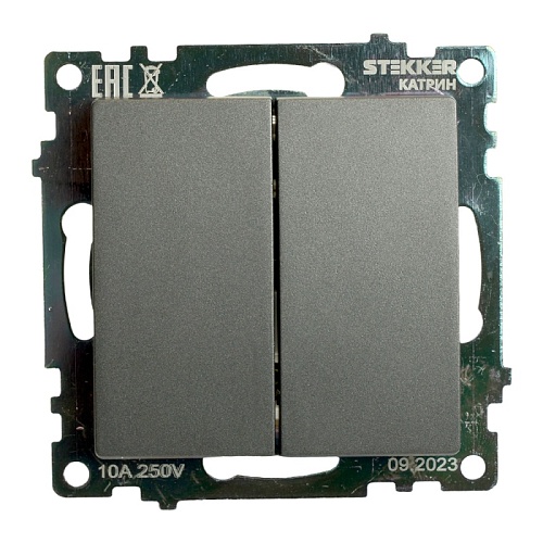 Переключатель 2-клавишный (механизм), 250В, 10А, серия Катрин, графит, GLS10-7107-06