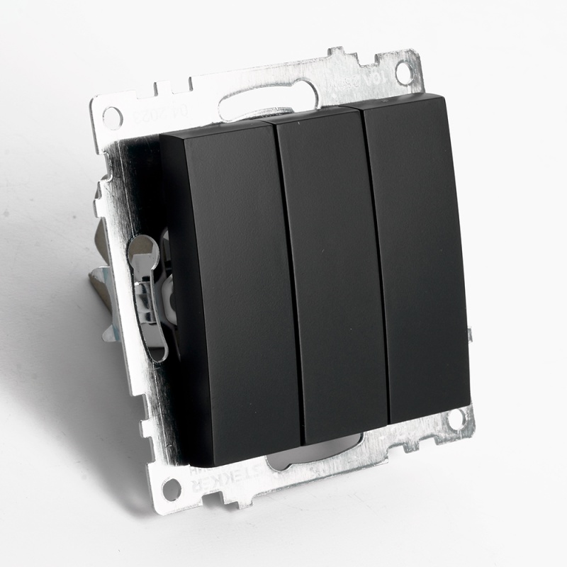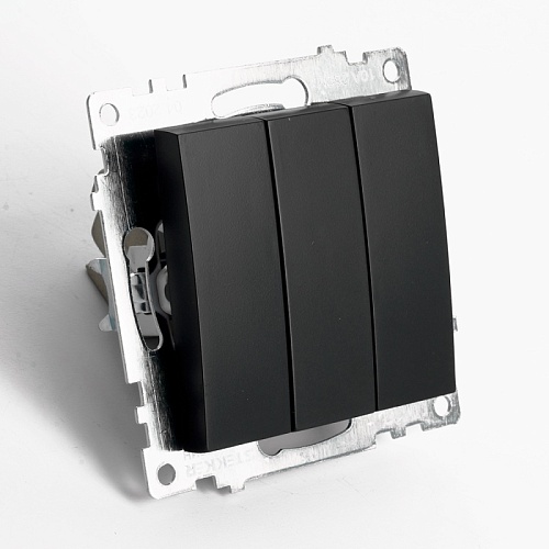 Выключатель 3-клавишный (механизм), STEKKER GLS10-7108-05, 250V, 10А, серия Катрин, черный
