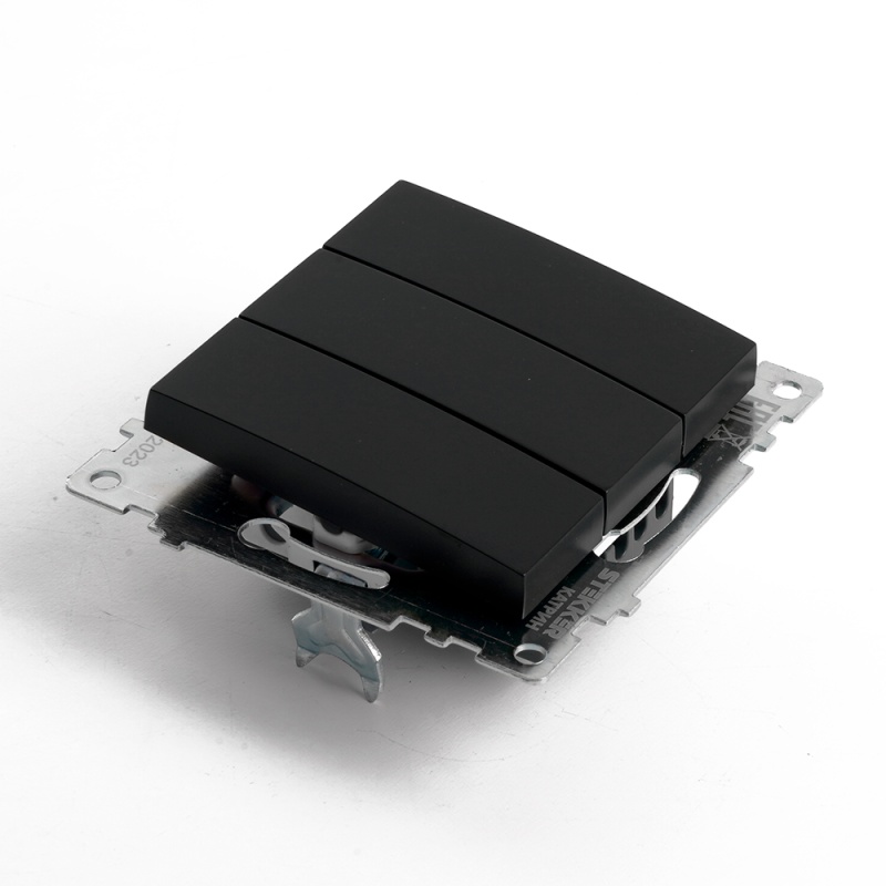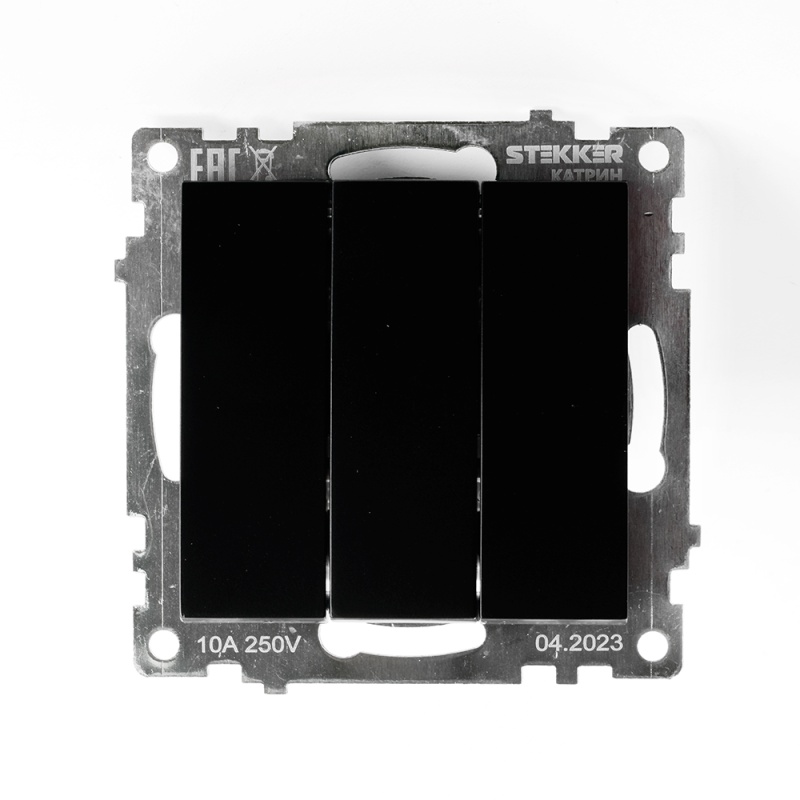 Отзывы о Выключатель 3-клавишный (механизм), STEKKER GLS10-7108-05, 250V, 10А, серия Катрин, черный