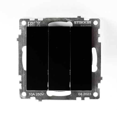 Выключатель 3-клавишный (механизм), STEKKER GLS10-7108-05, 250V, 10А, серия Катрин, черный 49172
