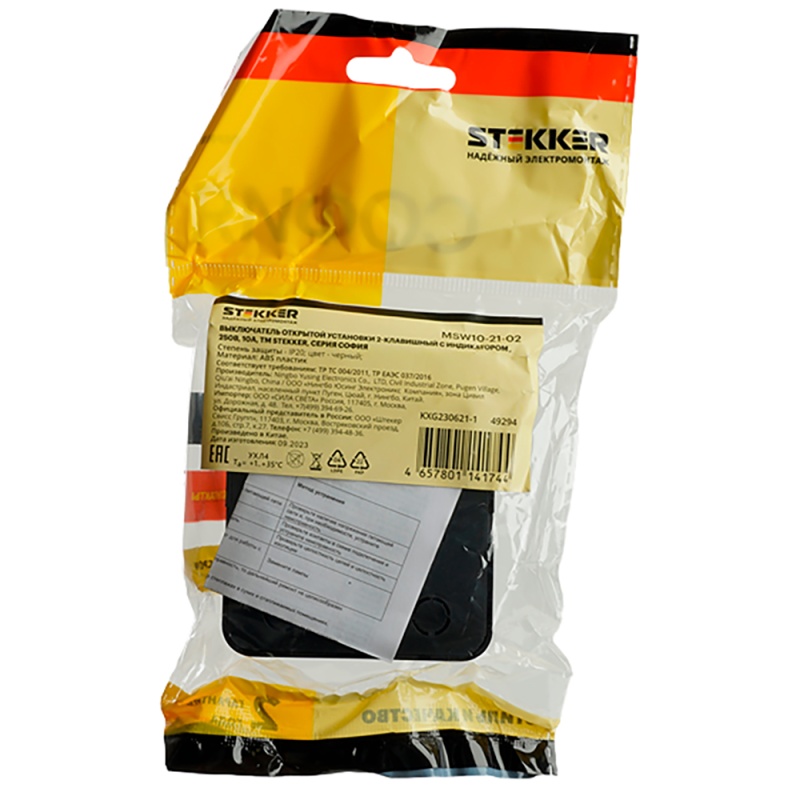 Отзывы о Выключатель открытой установки 2-клавишный с индикатором, STEKKER, 250В, 10А, IP20, серия София, черный, MSW10-21-02