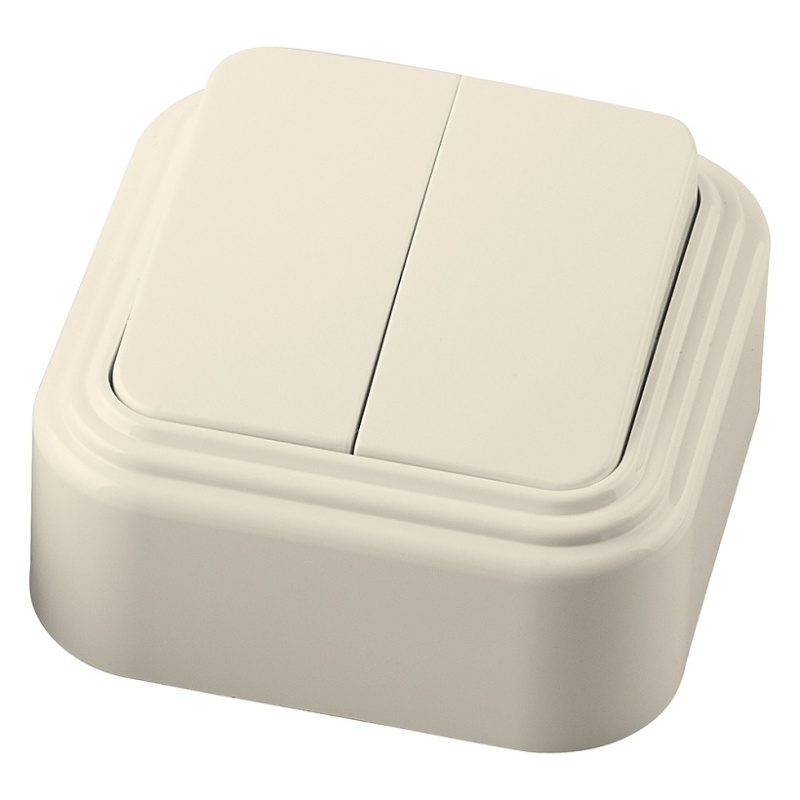 Выключатель STEKKER PSW06-22-20 двухклавишный открытой установки, 250В, 6А, IP20, слоновая кость (VA5 6-232-БЖ) 49050