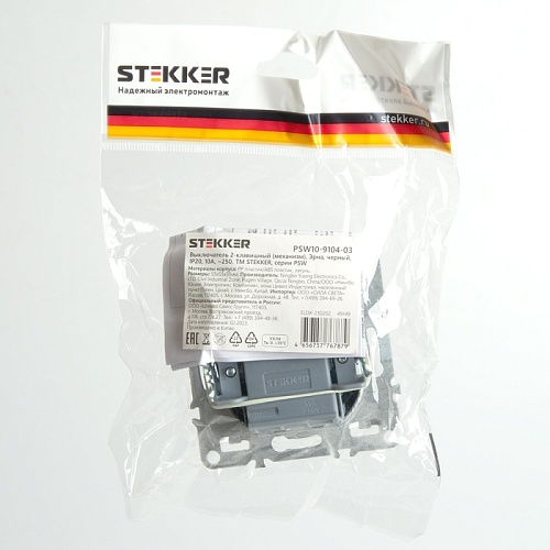 Отзывы о Выключатель 2-клавишный (механизм), STEKKER, PSW10-9104-03, 250В, 10А, серия Эрна, черный