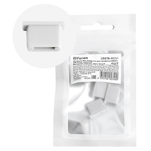 Заглушка без отверстия для профиля CAB251, LD376 (комплект 4шт) 48251