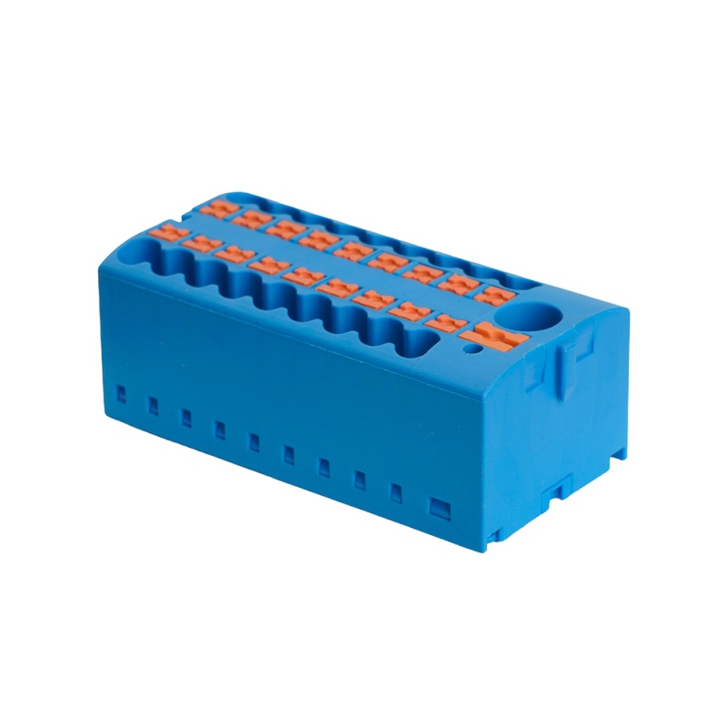 Отзывы о Зажим блочный (групп) для распред.тока нагрузки push-in на 18 точек, сеч 2,5 мм2,690V,41А, 1точка интегр. питание, синий LD580 PTFIX 6-18/25