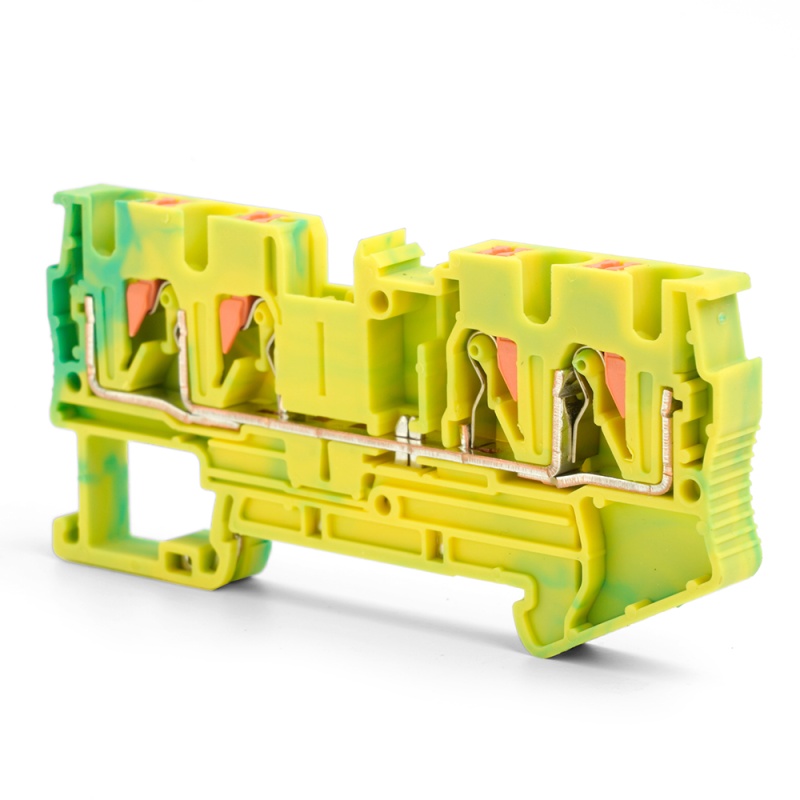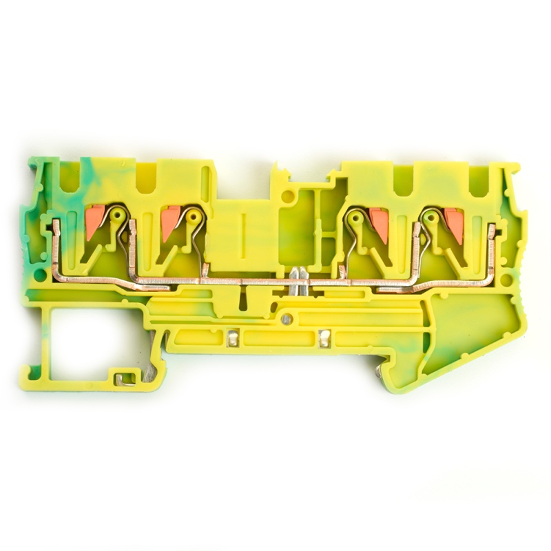 Зажим пружинный, 4-проводной проходной ЗНИ - 4 ,JXB PT 4 , желтый,зеленый LD574-1-40