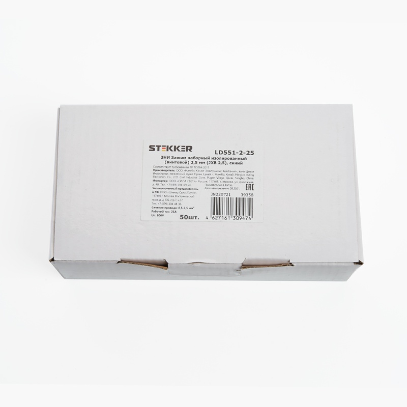 Зажим наборный изолированный (винтовой) ЗНИ - 2,5 (JXB2.5), синий, STEKKER, LD551-2-25 39358